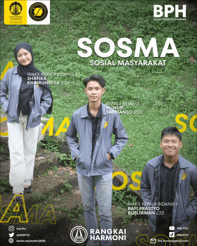 Sosial Masyarakat adalah bidang yang berfokus pada pengabdian kepada masyarakat serta mendukung kesejahteraan mahasiswa Departemen Teknik Sipil melalui berbagai program sosial dan kegiatan yang responsif terhadap kebutuhan sekitar.